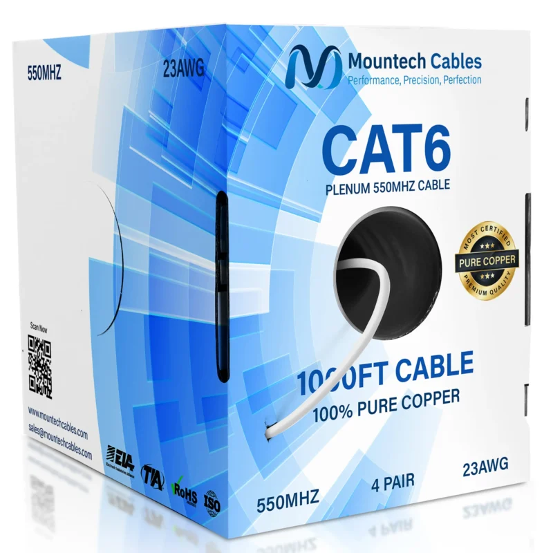 Cat6 Plenum 1000ft UTP Ethernet Cable – 10Gbps, 550MHz, Bare Copper CMP